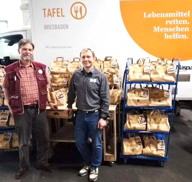 Unser Vorstandsmitglied Gerhard Schlemmer (links auf dem Foto) konnte die Spendentüten und Waren am 30.04.24 in Empfang nehmen. Die Tafel Wiesbaden e.V. sorgt dafür, dass die Spenden dort ankommen, wo sie dringend benötigt werden.